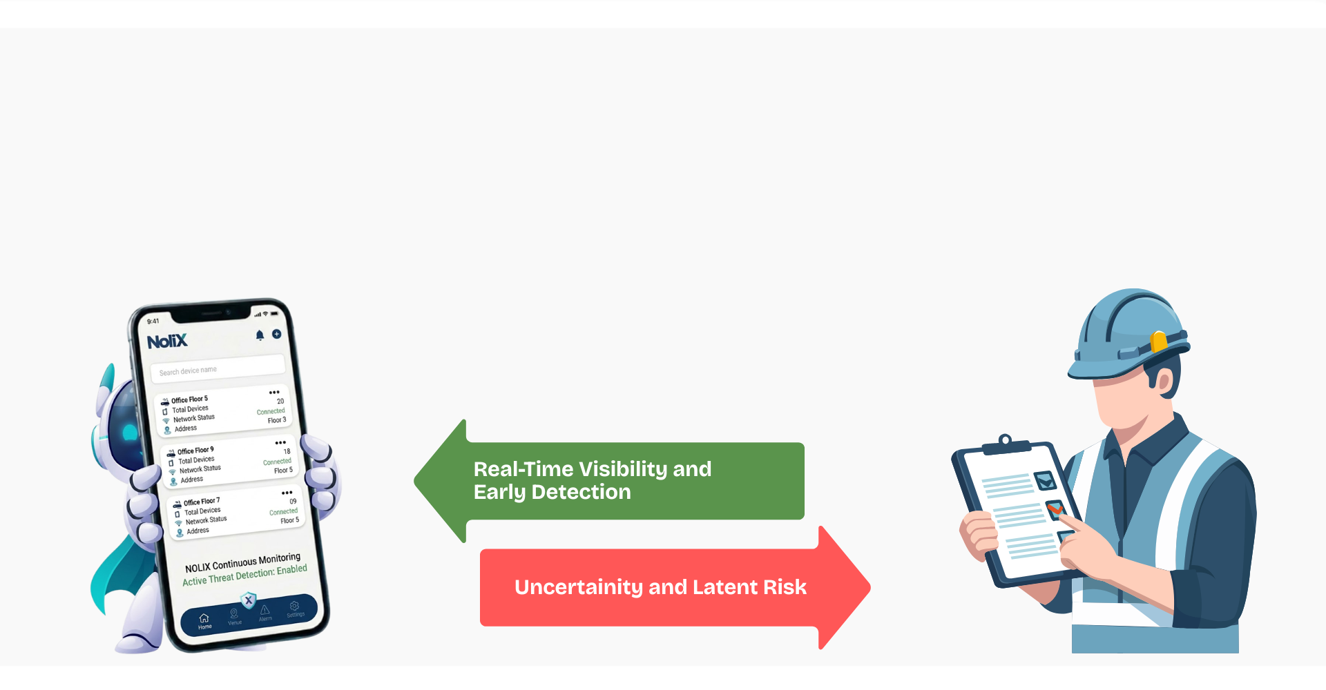 NoliX® continuously monitors hard-to-see areas and sends real-time alerts when early warning signs appear, allowing teams to fix problems before failures occur.